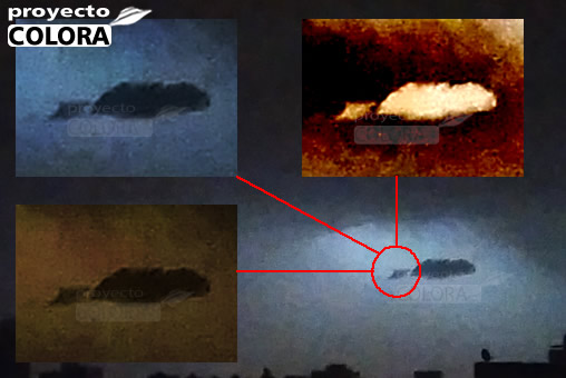 Al lado de dicha nube , los testigos visualizaban un objeto que se destacaba en cada relàmpago, Claudio enseguida activò su celular y comenzò a filmar esa extraña manifestaciòn, logrò filmarlo brevemente parecìa como camuflarse en la nube que estaba a su lado, hasta desaparecer completamente dicho objeto.