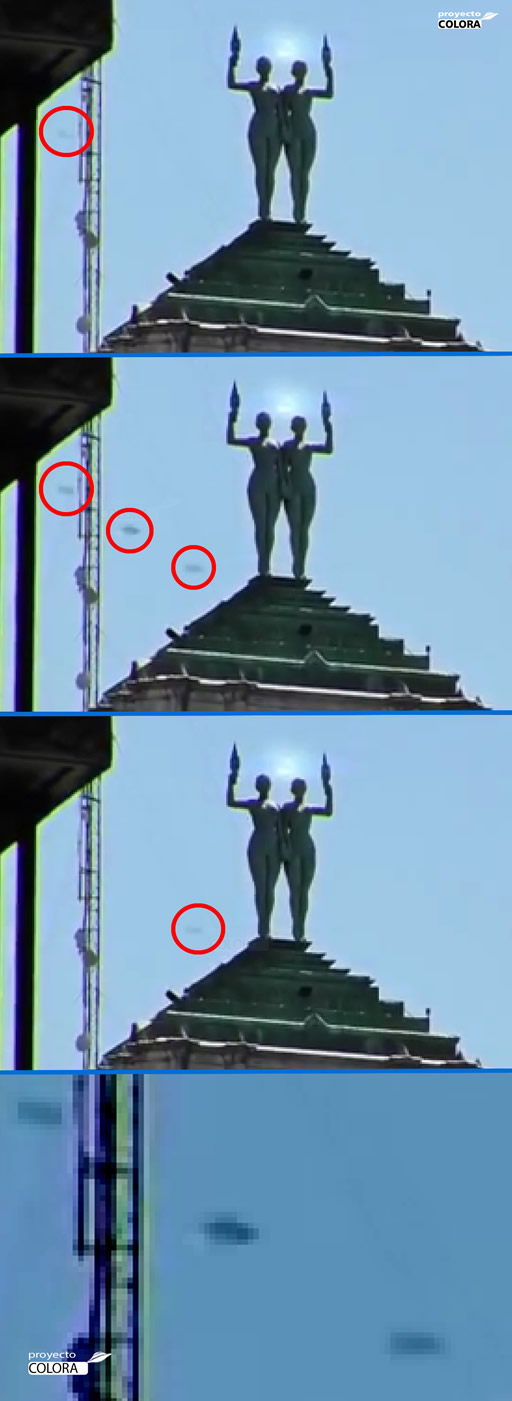 En la filmaciòn se visualiza el fenòmeno que produce un efecto similar a un arco voltaico , cambiando de coloraciòn y formas variadas. Agudizando la observaciòn del video; se logran observar diversos Objetos Voladores no Identificados, dichos objetos poseen diversas formas y se lo ven volando por el àrea del inusual evento.-