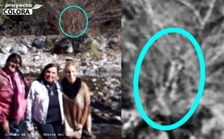 En la tarde del 15 de Agosto, siendo las aproximadamente las 16 hs., la señora Mónica del Gesso se encontraba veraneando con 2 amigas más, sacaron fotos al pie del Cerro Uritorco en el arroyo La Toma. Al regresar al hotel, observan algo raro en una de las fotos sobre una piedra grande que se encontraba detrás de ellas, inmediatamente las envían a la institución para ser analizadas.