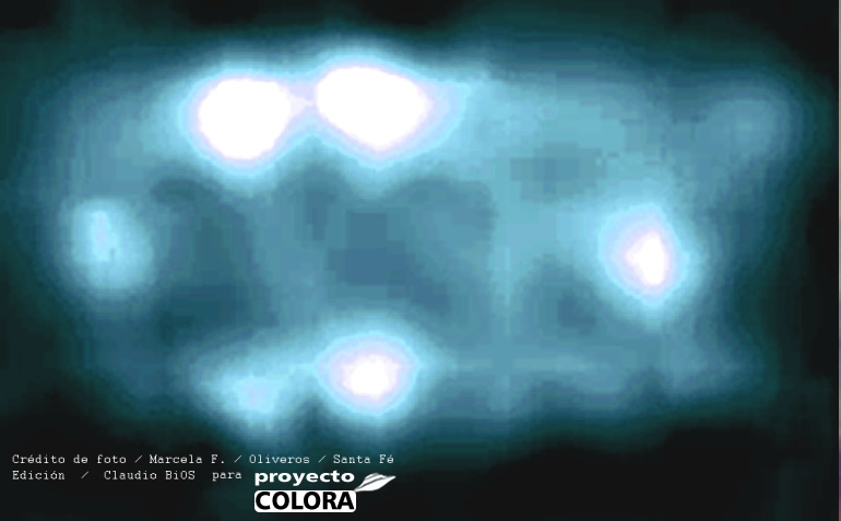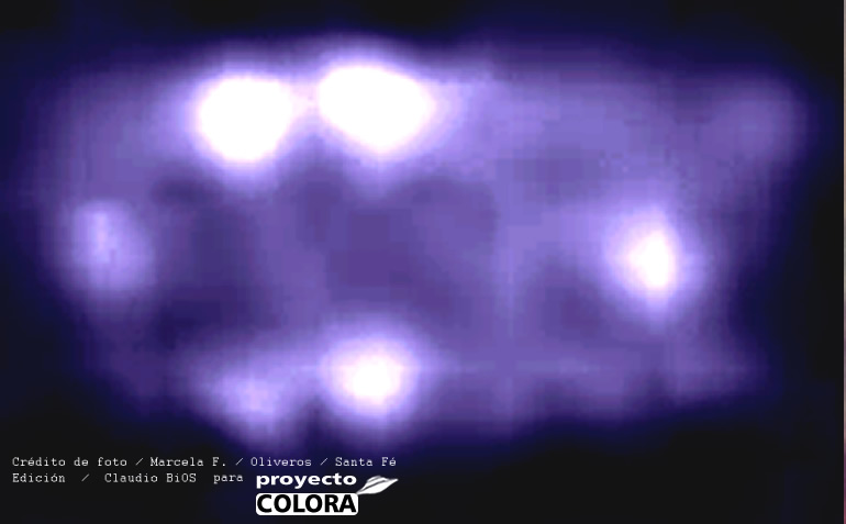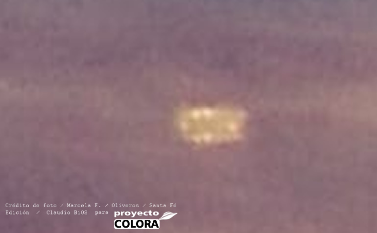 La testigo, Marcela F., residente en la ciudad de Oliveros, se dispone a fotografiar una vista muy pintoresca del atardecer de dicho día, cuando observa la imagen obtenida descubre, para su sorpresa,un extraño objeto suspendido en el cielo,ella no lo visualizó al momento de sacar la foto, entonces decide enviar dicha foto a Proyecto Colora para ser analizada.