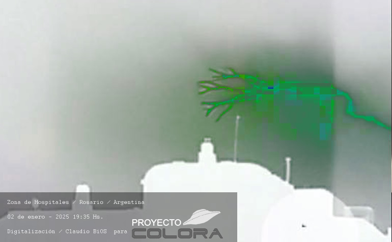 La señora Claudia sale a su balcón, vivienda ubicada en la zona de Hospitales de la ciudad, llama su atencíón un poderoso rayo en el cielo, de inmediato procede a sacar fotos al cielo advirtiendo en ellas anomalías, enviando el material a nuestro Centro de Investigción para ser analizadas.